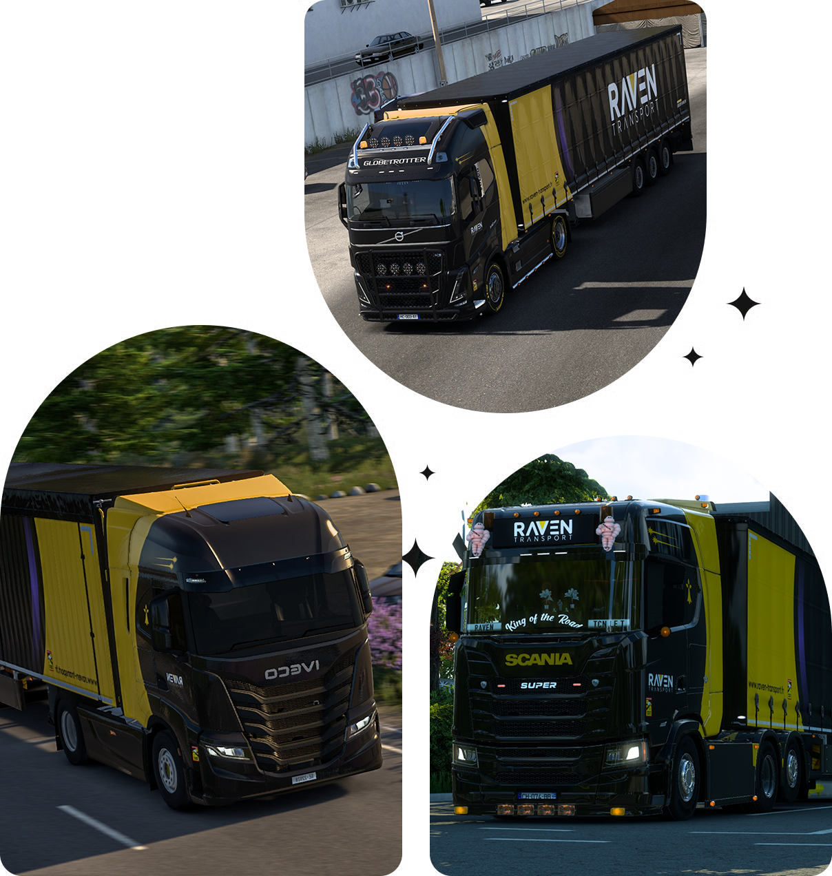 Raven Transport vous offre l'expérience d'une aventure exceptionnelle ! Avec ton propre camion, tu nous rejoins en tant que partenaire RP. Tu es libre, mais engagé : tes kilomètres contribuent à notre histoire !